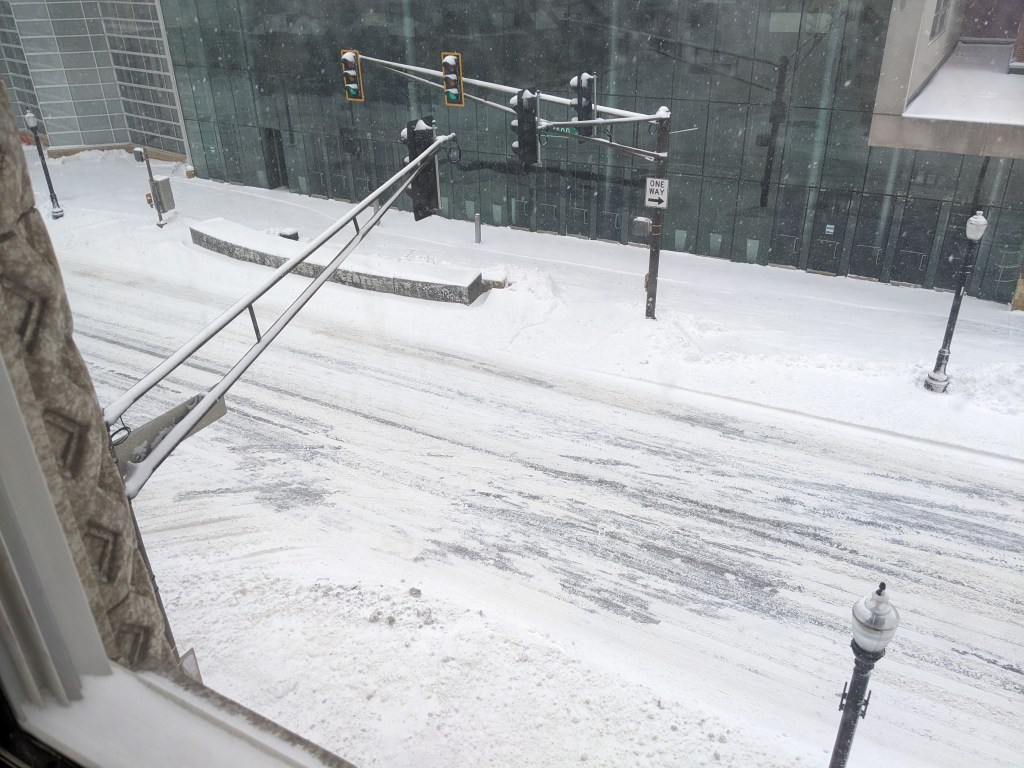 This may seem like an ordinary picture — it is — but it represents no small point. The week didn’t start well. The first two days each received 3-5 inches of snow, shutting down almost every restaurant in the area. I would have thought that Indiana was better at dealing with the snow, but everything was closed. I was fine because I brought food with me so I could maintain some semblance of my diet, and those with cars could drive out of the area to grocery stores, but many were forced to rely on a single pizza-by-the-slice restaurant for the first two days. I don’t know how they survived.