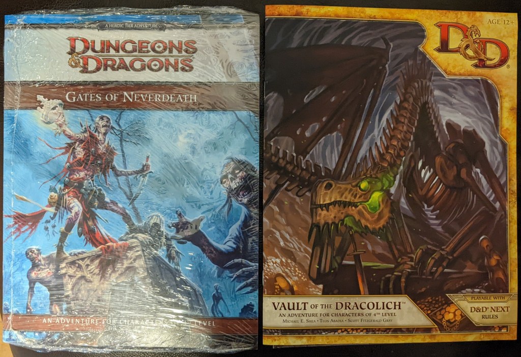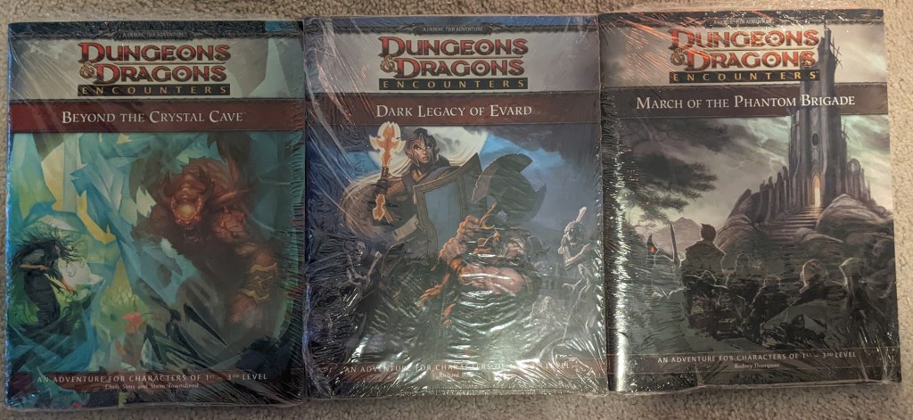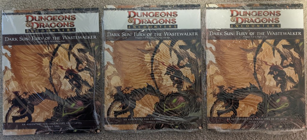 Oddly enough, I never played or ran either one of these, yet the shrink wrap has been removed from them. I’m guessing the DMs gave them back to me, but that doesn’t make a lot of sense. I allowed them to keep them because I had so many. Art credit to Eric Belisle and Alexey Aparin.