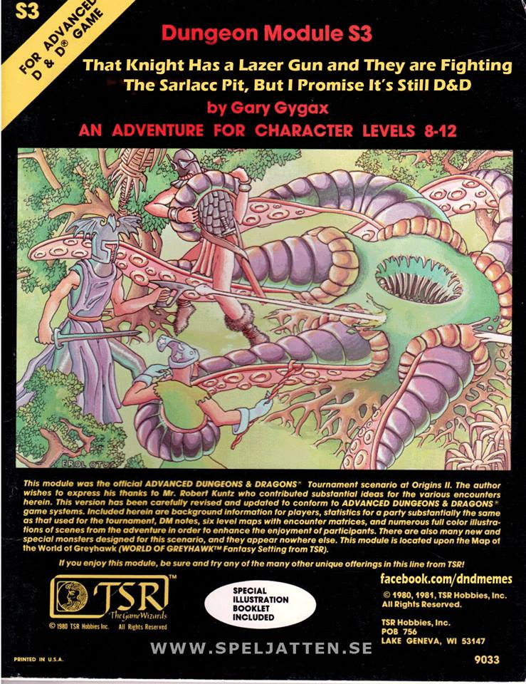 I’ve done a lot of lists on this blog. A lot of people have done lists of the greatest D&D mods*** ever. So, I’m going to do a list of my favorite D&D mods. One comes from 3rdEdition D&D (“3e”), but the rest come from 1st Edition D&D (“1e”). However, unlike most people, I’m not going to attempt to give you an objective analysis as to why these are the best mods. This is a purely subjective topic, and I’m not one to deny my lizard brain nature. I fully admit that the reason a mod is going to appear on this list is emotional in nature. Still, you should consider running them in whatever system you’re using. If for no other reason, you’ll witness the inspiration for your favorite adventures. In terms of the 1st Edition D&D (“1e”) mods on this list, these were the pioneers.