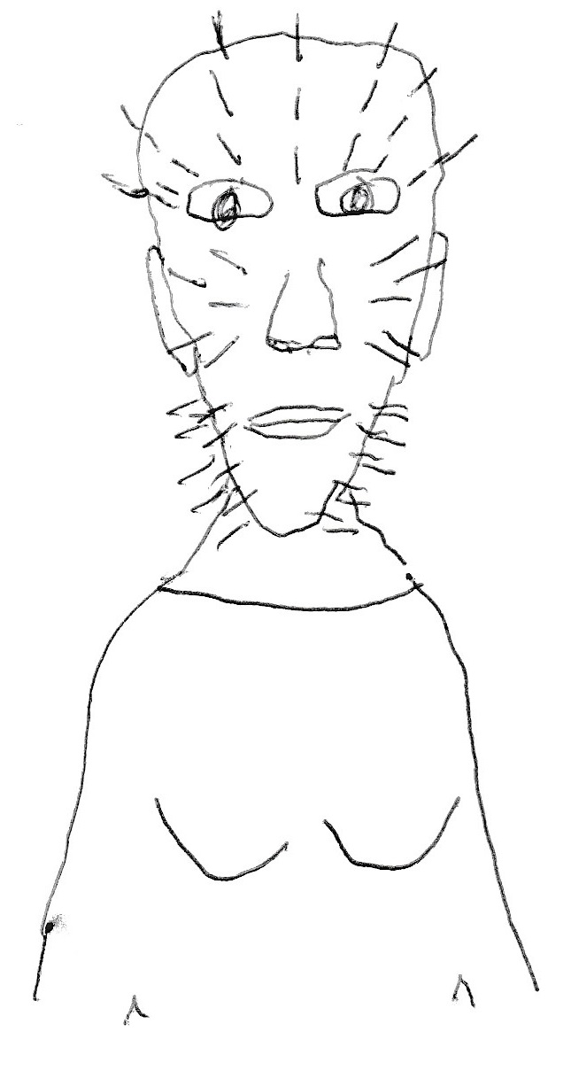I saw only the second Hellraiser on VHS back in the 80s, and so this image is dedicated to the version of me that existed back then. I would have preferred a Pinhead with boobs back then. I haven’t changed much, so I still do.
