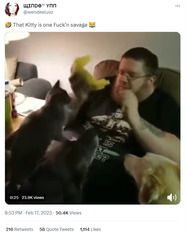 If the tweet is deleted, it’s gone. I can’t screenshot every frame of the video, but here’s one frame. It’s a housecat insisting on eating his owner’s McDonald’s cheeseburger.