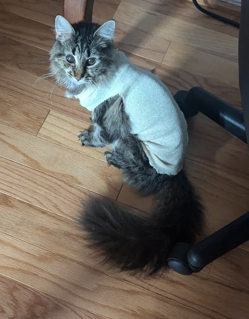 Ishtaar, when feeling good, is remarkably social. She always wants to be near me, and usually wants to be on my lap. She’s also remarkably easygoing, accepting whatever circumstances she’s given. Tez is somewhat antisocial. That doesn’t stop him from crying for attention, especially when he feels Ishtaar gets too much of my attention, but if I acquiesce, he usually runs away. Occasionally, he’ll allow me to pet him, but that quickly devolves into a clawing and biting attack. It’s playful, and he can control the intensity of the bites, but he has no such control over his claws, so I often have cuts on my hands. That’s okay, though, because I like playing with cats, and he’s far more active in that regard. Overall, though, they’re both good kitties, just in very different ways.