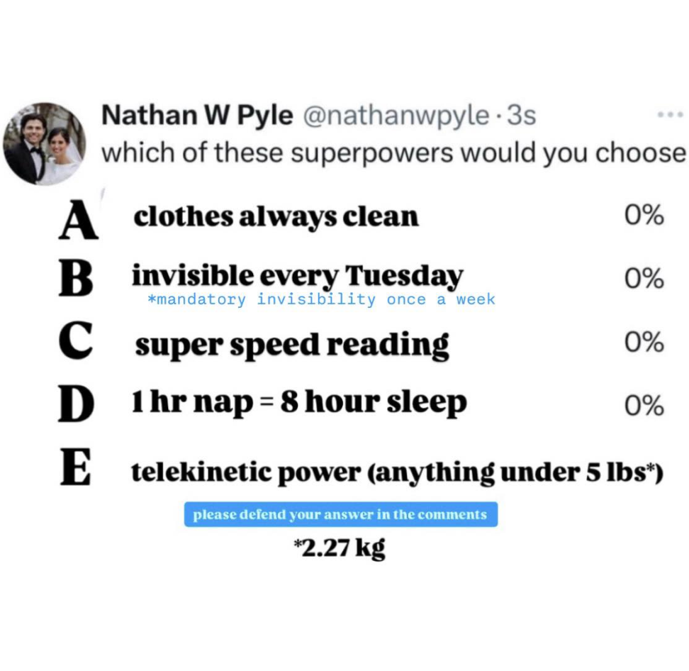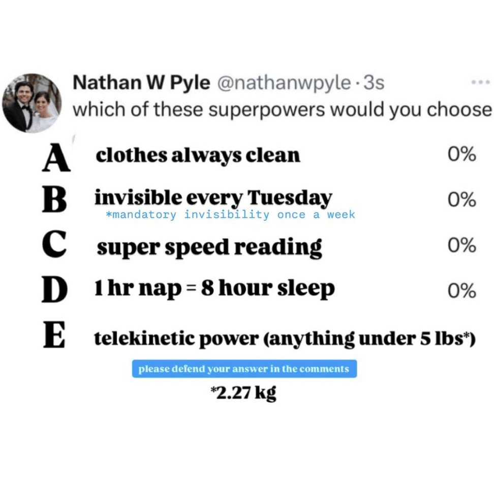 Choose Your Weird Superpower cc: @nathanwpyle #meme #superpower