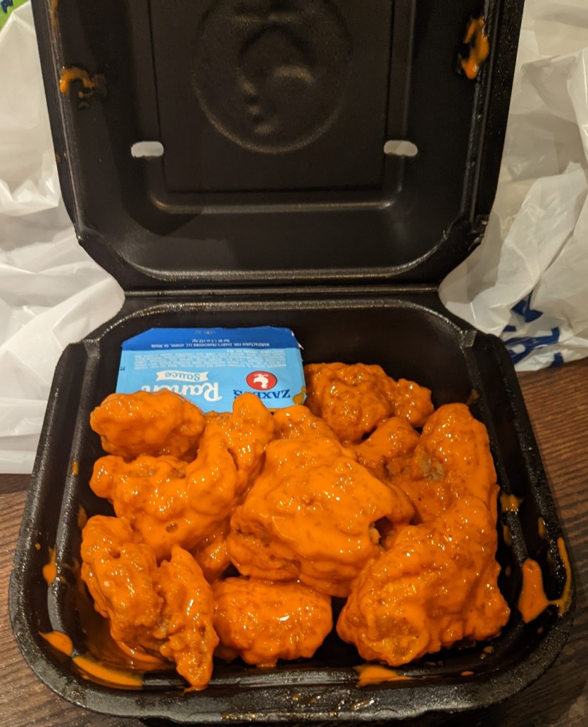 Well, I’m not so much criticizing the food as I am the service. I’m writing this on 4/5/2022. I’m on the carnivore diet this week, so this was as good a time as any to try out the Zaxbys in my new neighborhood. I knew this was fast food going into it, but I was told that it’s “good fast food,” so I didn’t expect to be terribly disappointed. Oh, well.