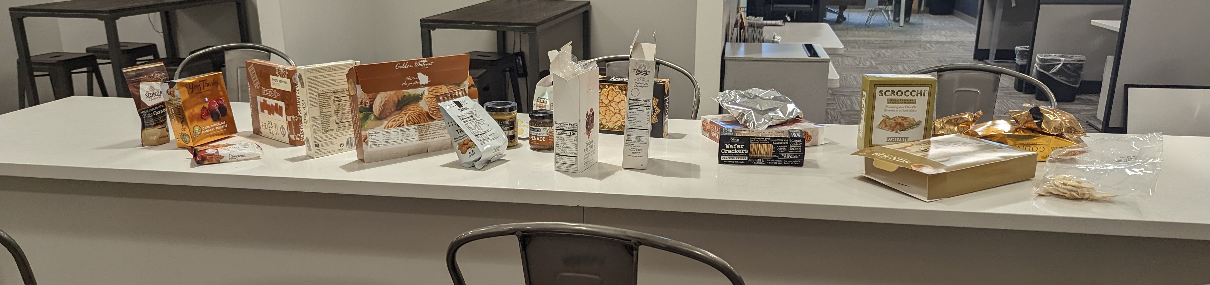But that’s not all. I work with a title company, which is basically an insurance agent for insurance related to real property ownership. We have an underwriter, and they sent us holiday treats. However, very few of us were interested in anything beyond the one package of chocolate truffles.