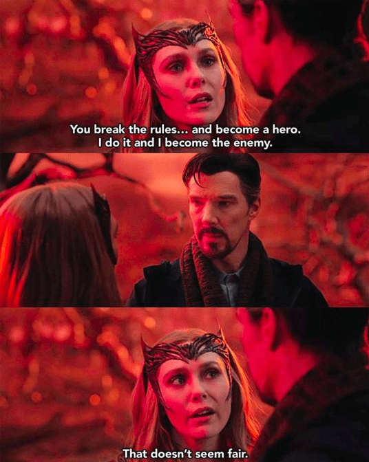 I’ve already (re)shared it to all of my social media accounts, but I find it funny that just one year later, Wanda’s line in Doctor Strange 2: The Multiverse of Madness.