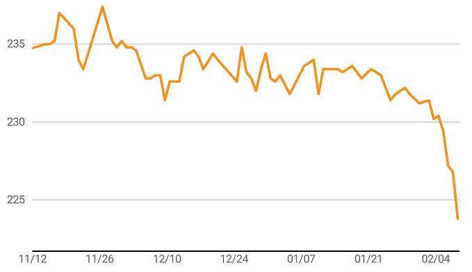 Here’s something non-nerdy presented in as nerdy a way as I can. (Translation: Boring.) Many of you know of my relatively recent weight loss. That context may be important for this post, but hardly necessary. This week, I was off work for Winter Fantasy, and I spent most of that time at home. That gave me the opportunity to completely control my diet. Eating at home was never inconvenient. So, for the second time in recent times (I lost 17 pounds in two months last time), I decided to go on the carnivore diet for one week. Today is day seven, so my report is actually for only six days. I enter my weight and nutritional information into MyFitnessPal. Here’s my weight chart for most of the past 3 months.